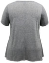 - Description: Round neck or V neck short sleeve graphic print swing top has high low fullness at the hem for the figure-flattering look. It is longer side length with a shorter front and back.